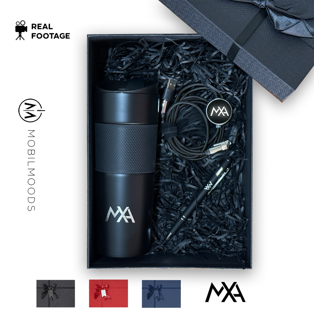 Inside these curated boxes, you can include an array of products such as: Portable Chargers (standard and 20,000 mAh), Smart Thermoses, Standard Thermoses, Thunder Powerbanks, Charging Cords, Desktop Wireless Stations, MagSafe Charging Stations, Premium Pens, MagSafe Car Holders, Desktop Pen Holders with Wireless Charging, Bluetooth Speakers, and Phone Stands. The flexibility to mix and match items allows you to create the perfect combination tailored to your recipients’ preferences and needs.